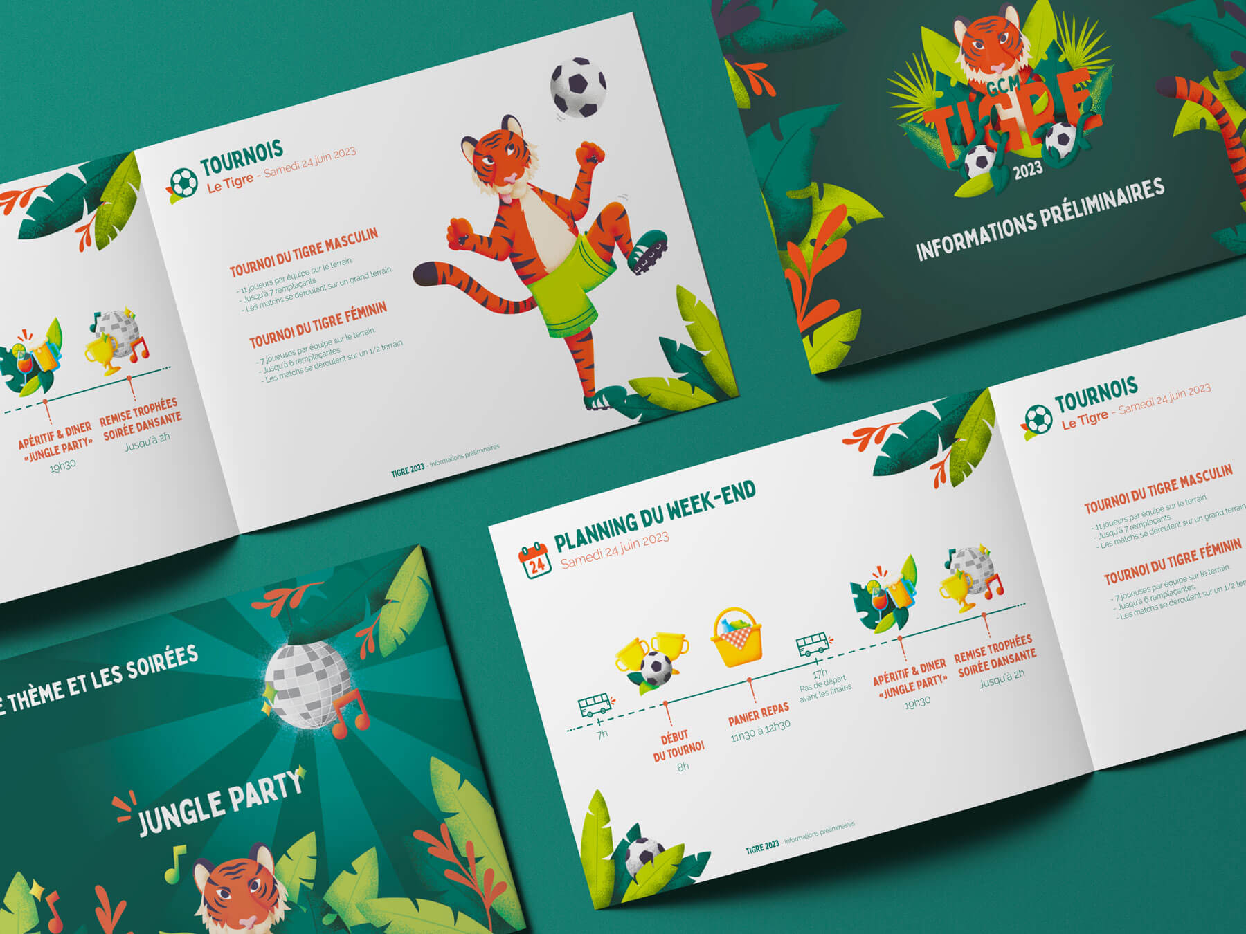 L’ambition ne s’arrêtait pas à un logo ou à une illustration. Pour « Tigre », chaque support de communication – de la signalétique au motion design, en passant par les brochures et le web – a été l’occasion de plonger participants et spectateurs dans une expérience immersive. Les animaux humanisés, aux personnalités distinctes, ont servi de guides dans cet univers, transformant un simple événement sportif en une célébration captivante et mémorable de la passion du foot.